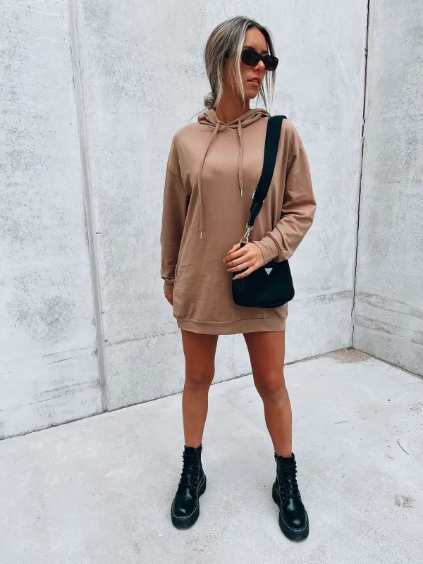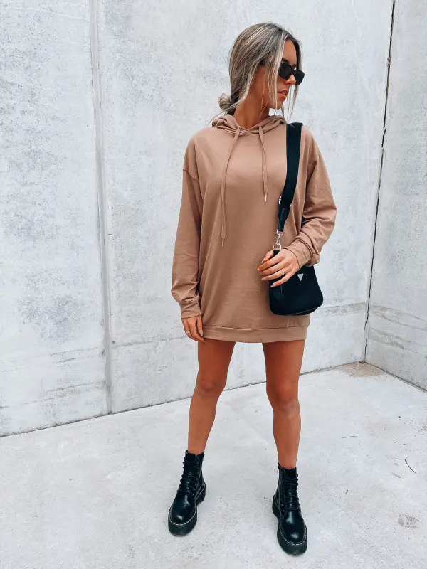 • Features: Long sleeve, hooded, soft cami materail, front pockets, full length bodice, relaxed fit silhouette